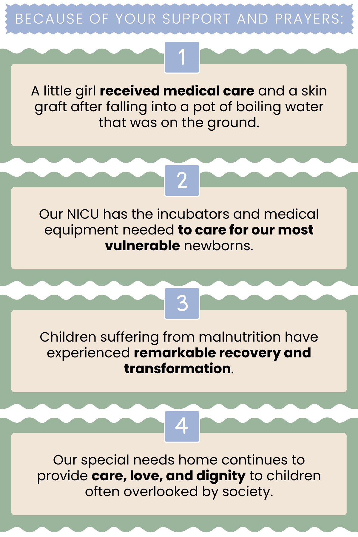 Divine Interruptions Dear Danita's, This summer, our team has been reflecting on moments when God showed up in unexpected ways—times when His presence broke through difficult circumstances. We’ve come to call these moments Divine Interruptions. If you’ve walked with Jesus for any length of time, I’m sure you have your own stories—times when Heaven touched earth in the middle of chaos. One such moment takes me back to 2004, a year forever etched in my memory. At the time, Haiti was in the grip of political unrest. Armed rebels were sweeping through the country, targeting government officials and business leaders. Fear hung heavy in the air as village after village fell under their control.The U.S. embassy began sending me urgent messages—leave the country. But how could I? I couldn’t abandon my children and our dedicated staff. I cried out to God for wisdom: Lord, what should I do? Late one night, after much prayer and wrestling, God answered—in a dream. That doesn’t happen to me often, but when it does, I know to listen. In the dream, I saw floodwaters rushing across Haiti, destroying everything in their path. But when the waters approached our children’s home, they parted and flowed around our land, never touching us. I woke up with peace. God had spoken. I was to stay. Days later, we received word that the rebels were nearing our village. I watched as they entered our town breaking down doors, searching for people and weapons. I told the children to stay low, and most of our staff had already gone home to be with their families. My heart pounded as the rebels turned toward our neighbor's home and they saw me looking through a window. They began to shout, "Americans, Americans!" - but then something unexpected happened. Voices began to rise from the village—pleading, shouting: “That’s Mami Danita! They help our children! They care for our people!” The villagers stood in our defense. Later that evening, one of the rebels approached our front gate and spoke with one of our workers and said, “We heard there’s an orphanage here, and a woman named Mami Danita takes care of the children. Please tell her—if she needs anything, we will help.” When I heard this, I sent back a simple message: “Tell them we need food.” We relied on daily fresh supplies from the Dominican Republic, but the border was closed. The following day, the rebels returned with a wheelbarrow full of food. They had gone to the closed border of the Dominican Republic, lined with armed guards, and somehow managed to work with our Dominican staff to pass food over the locked gate. Bread, peanut butter, powdered milk—all of it thrown over the fence into waiting arms. They brought it back and fed our children. Not one of us was harmed. We could have despaired, we could have fled. But instead, we looked to the God of miracles—and He did what only He can do. To this day, we are grateful for your continued prayers and generous support. If you’re facing your own storm right now, may this testimony encourage you: God is still in the business of divine interruptions. He is faithful. He is near. We appreciate you more than words can say.